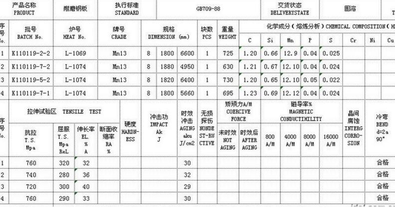 圖(2)Mn13高錳鋼耐磨襯板材質(zhì)單